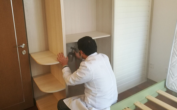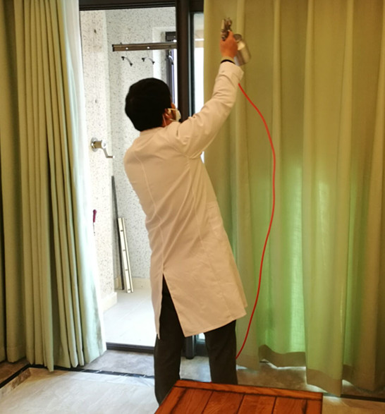 使用藥劑及施工方案: 主要藥劑有甲醛消除劑、納米光觸媒。根據(jù)這套房子室內(nèi)裝修情況,對于集中定做的柜子和抽屜,我公司施工人員使用甲醛清除劑對柜子和抽屜進(jìn)行全面噴灑,重點(diǎn)治理,施工時保證全面均勻、不留死角,另外對墻面和沙發(fā),坐墊窗簾等布飾使用光觸媒治理,在分解污染源的同時,增加光觸媒的受面,能分解游離的甲醛其他污染物,下面為施工現(xiàn)場照片: